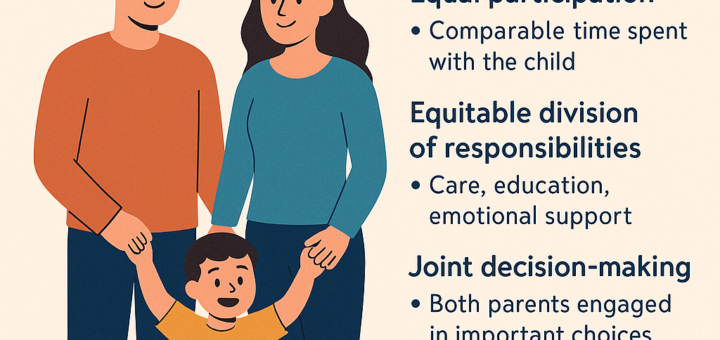 Ο όρος equal sharing of caring responsibilities of a child (εξίσου κατανομή των ευθυνών φροντίδας ενός παιδιού) αναφέρεται στην ισόχρονη συμμετοχή και των δύο γονέων στη φροντίδα, ανατροφή και υποστήριξη του παιδιού, τόσο πρακτικά...