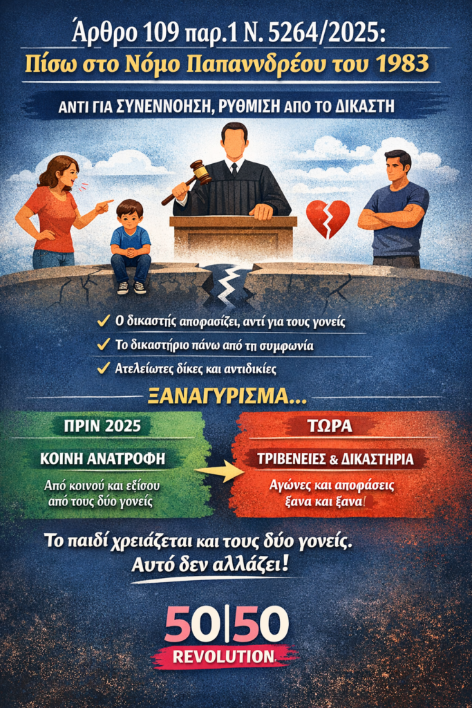 Άρθρο 109 ν. 5264/2025 βόμβα στη κοινή ανατροφή