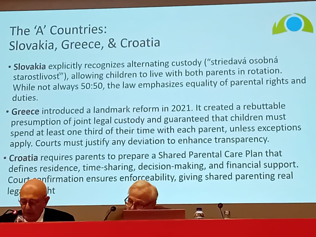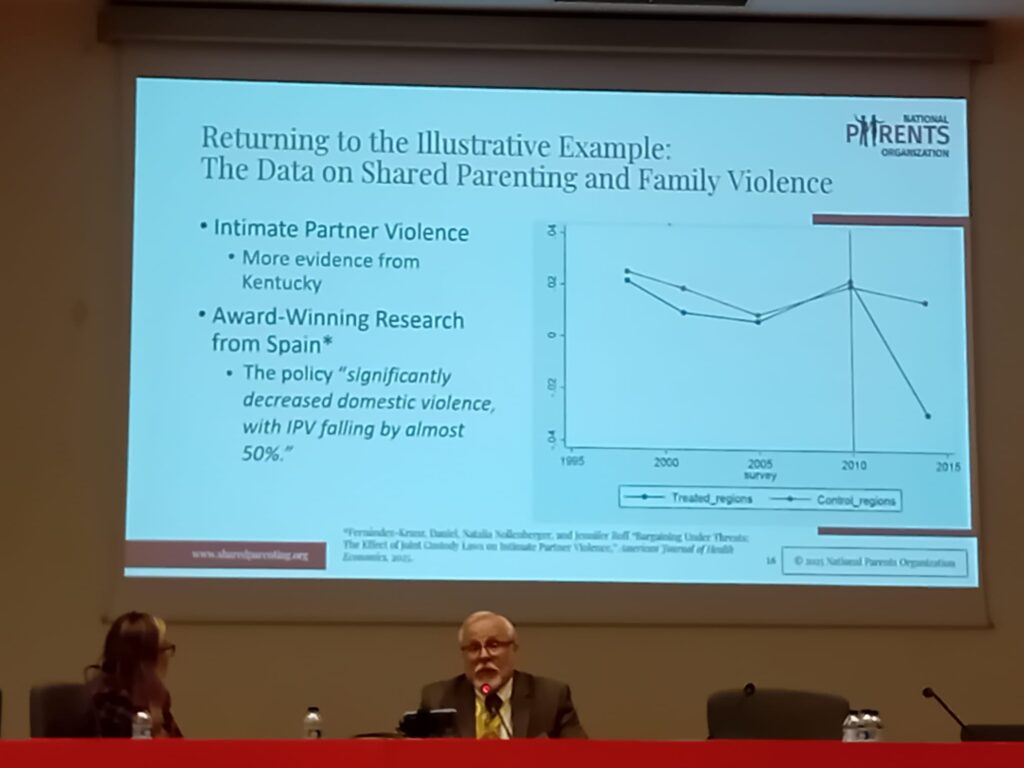 Ο William Fabricius, αναπληρωτής καθηγητής ψυχολογίας στο Πανεπιστήμιο της Αριζόνα, έχει δημοσιεύσει εκτενώς σχετικά με τις δια βίου νευρολογικές επιπτώσεις των συγκρούσεων στα παιδιά. Παρουσίασε νέα έρευνα από την Ισπανία που δείχνει ότι επτά επαρχίες που θέσπισαν νομοθεσία για την ισότιμη κοινή ανατροφή κατέγραψαν σημαντική μείωση στις συγκρούσεις των γονέων. Πέντε γειτονικές επαρχίες της Ισπανίας χωρίς παρόμοια νομοθεσία δεν παρουσίασαν τέτοια μείωση.